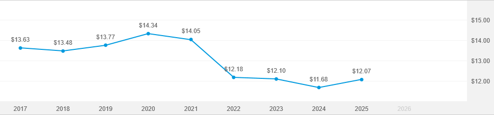 For the 10 Years ending 2/28/26
