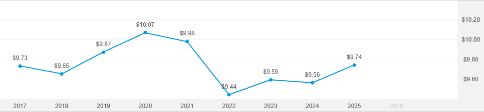 For the 10 Years ending 2/28/26